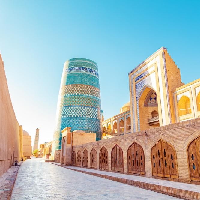 • Гигантский незавершённый минарет Калта-Минар — визитная карточка Хивы.
